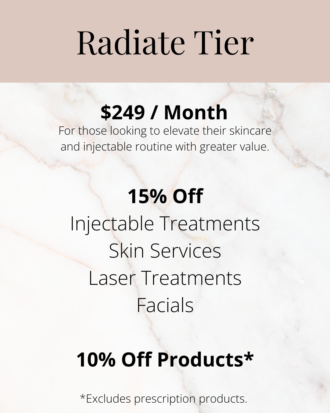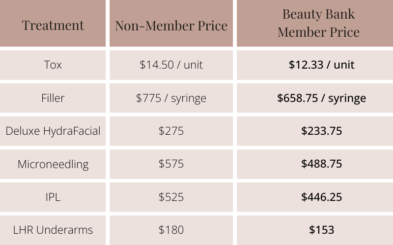 As a Beauty Bank Member, earn 2% back in loyalty points on every dollar spent above your beauty bank on injectable and skin services.